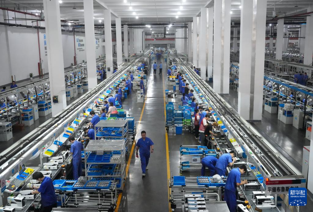 7月17日,在杰克科技股份有限公司臺州灣工廠,工人在生產線上工作。