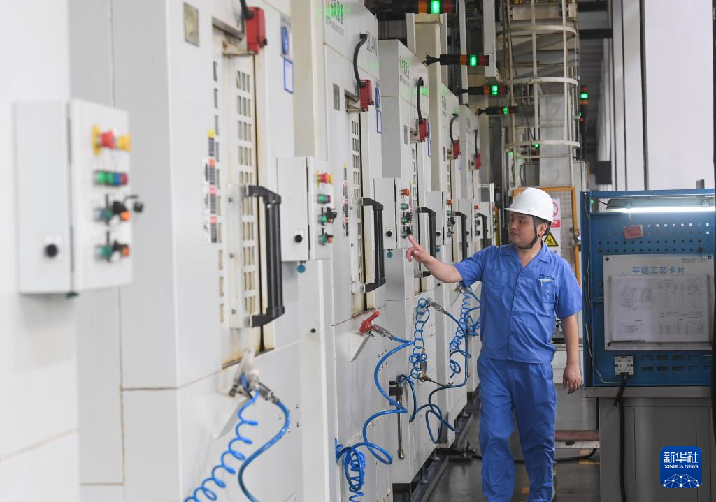 7月17日,在杰克科技股份有限公司臺州灣工廠,工作人員對縫紉機機殼全自動生產線進行巡檢。