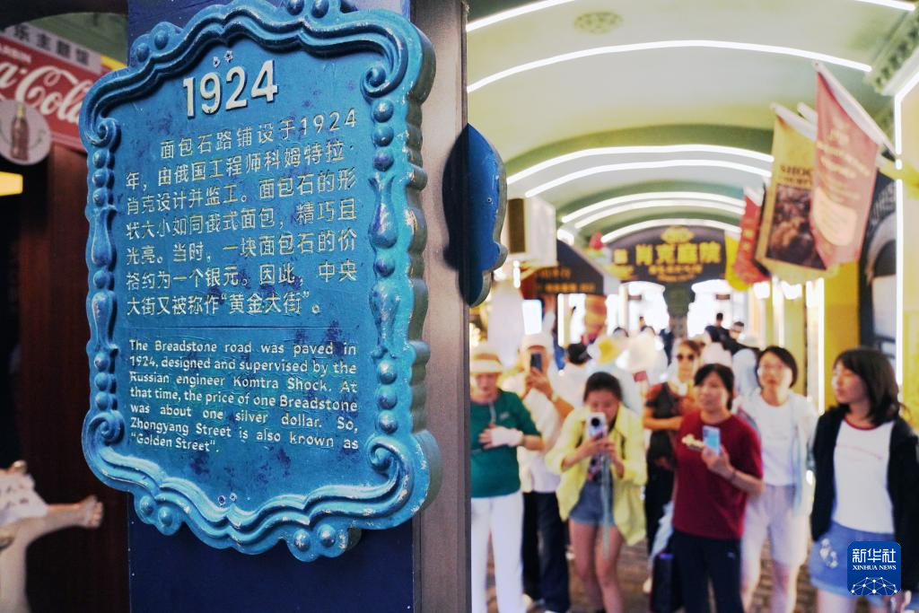 人們在哈爾濱中央大街肖克庭院景點參觀游覽(7月30日攝)。