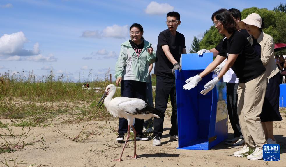 當日,哈爾濱市林業和草原局在金河灣濕地公園舉行野生鳥類放歸活動,成功將7只經專業救治的鳥類放歸自然,其中包括兩只國家一級保護動物東方白鸛。
