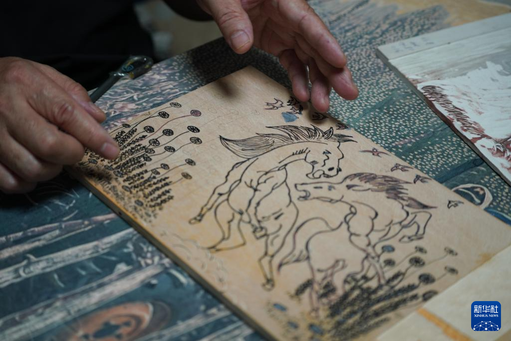如今,內蒙古扎魯特旗被譽為“中國民族版畫之鄉”,當地組建了由專業畫師和民間版畫愛好者組成的創作團隊,牧民、退休教師紛紛拿起刻刀,在木板上雕刻對生活和藝術的熱愛,創作了一大批兼具草原風情與現代氣息的版畫作品。