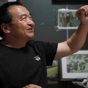 8月10日,在內蒙古扎魯特旗版畫院,畫家齊同躍介紹自己的版畫作品。
