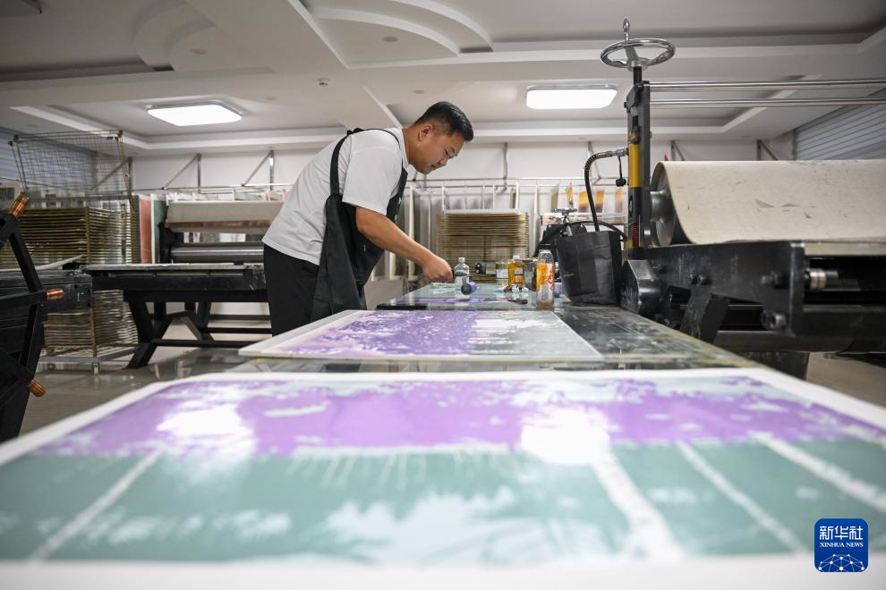 8月10日,在內蒙古扎魯特旗版畫院,畫家陳其木格為作品調顏色。