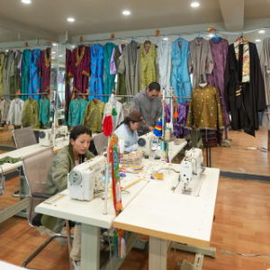 洛桑麥朗和學生一起制作的各類藏裝(8月15日攝)。