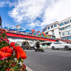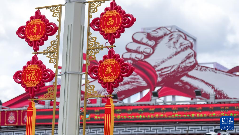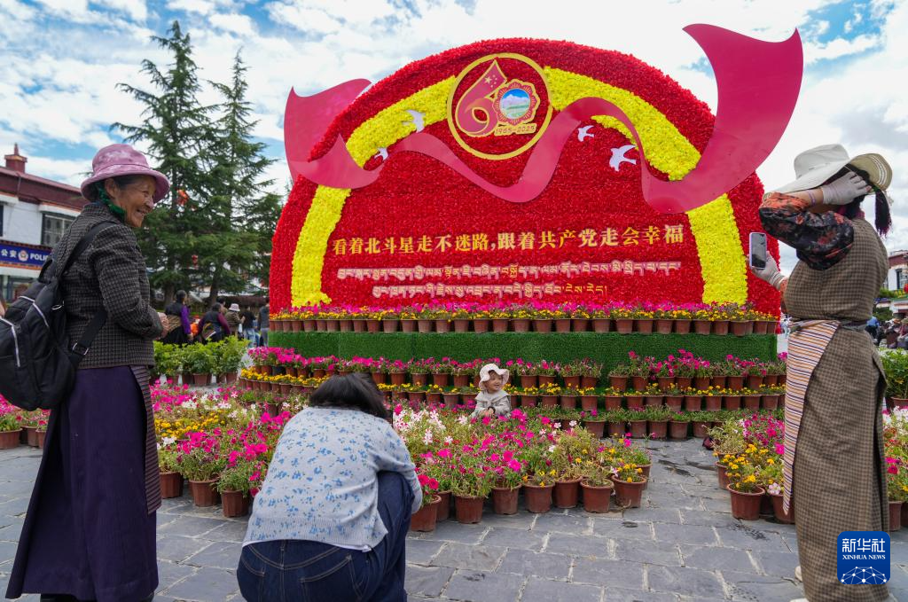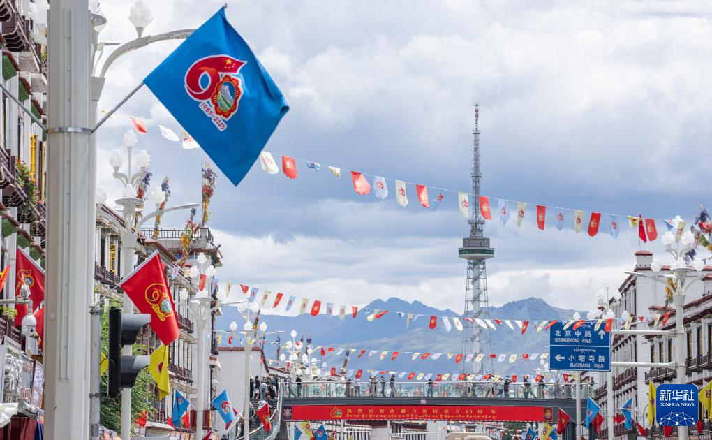 在慶祝西藏自治區成立60周年之際,拉薩街頭張燈結彩,處處洋溢著喜慶氛圍。