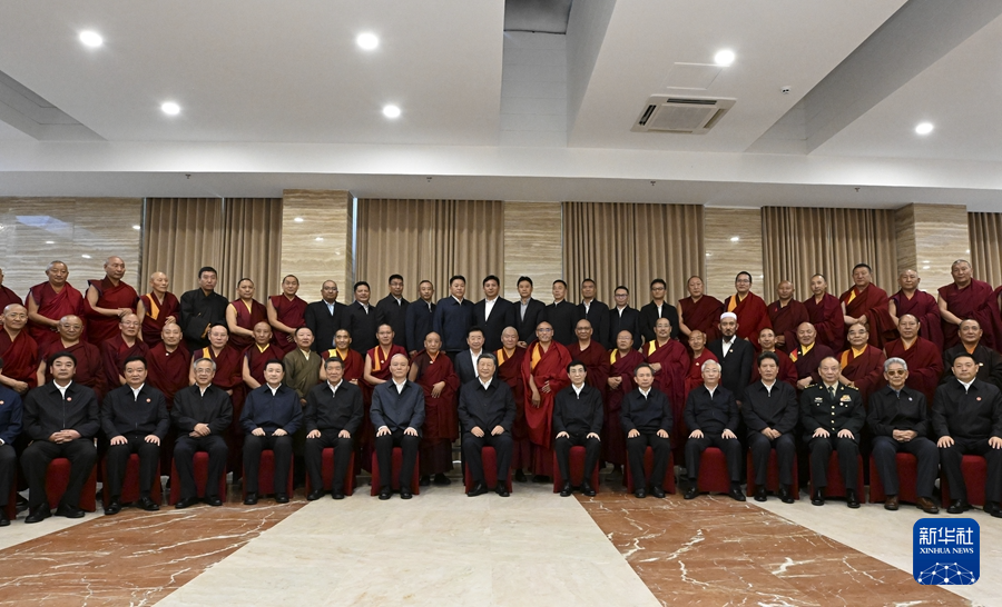 8月20日下午,中共中央總書記、國家主席、中央軍委主席習近平在拉薩親切接見西藏自治區宗教界愛國人士和寺管會干部代表,并同大家合影留念。