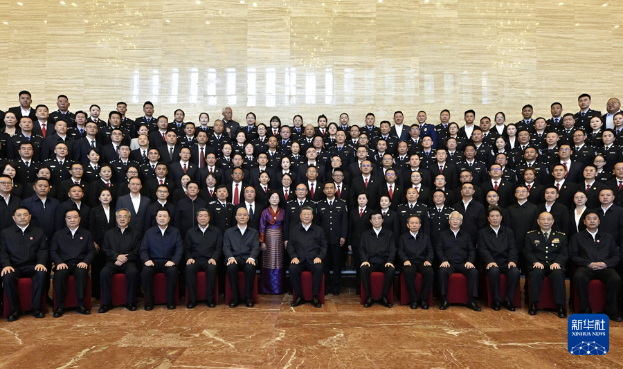 8月20日下午,中共中央總書記、國家主席、中央軍委主席習近平在拉薩親切接見西藏自治區政法干警代表,并同大家合影留念。