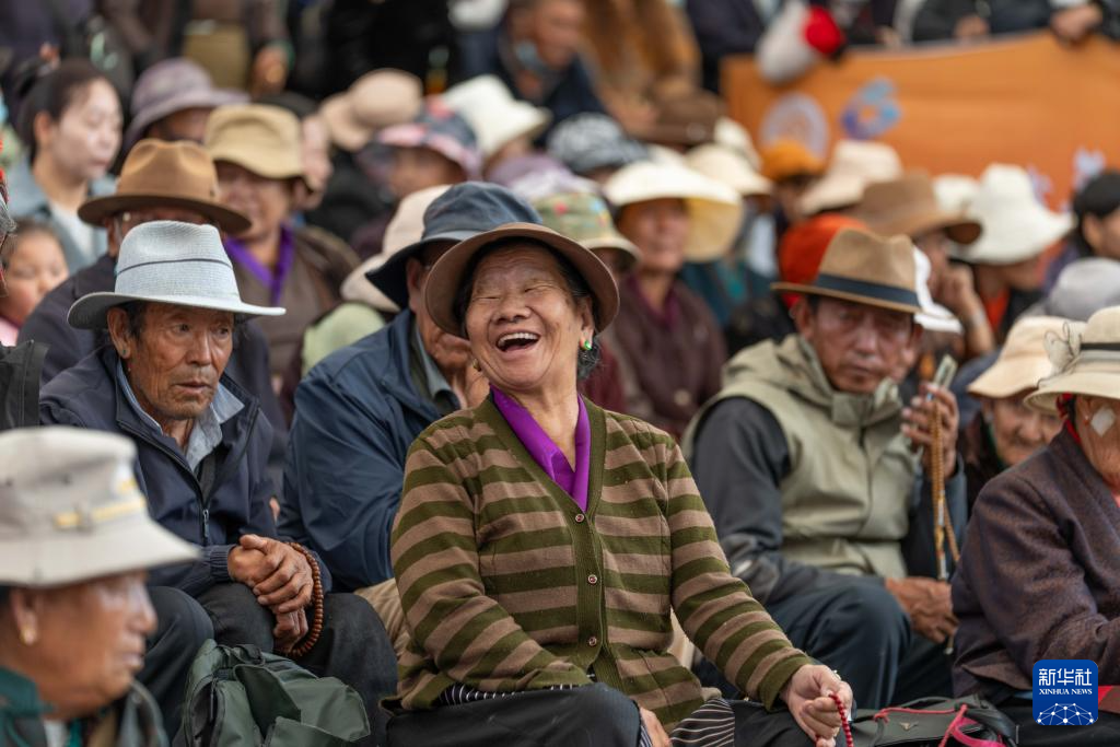8月24日,群眾在拉薩宗角祿康公園觀看藏戲。