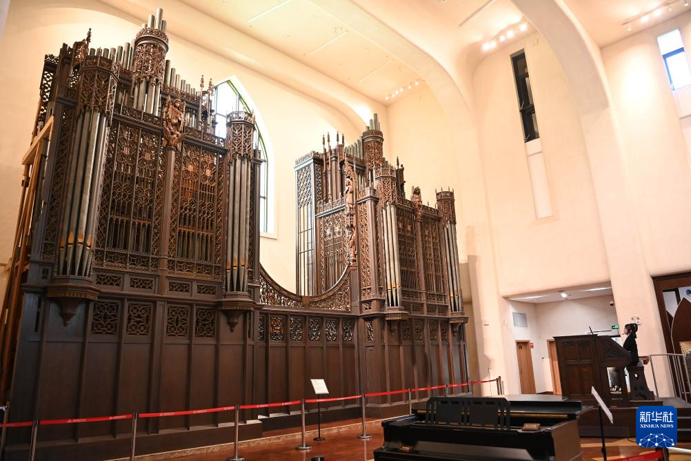 8月23日,鼓浪嶼文旅中心的工作人員在管風琴藝術中心演奏目前亞洲最大的管風琴。