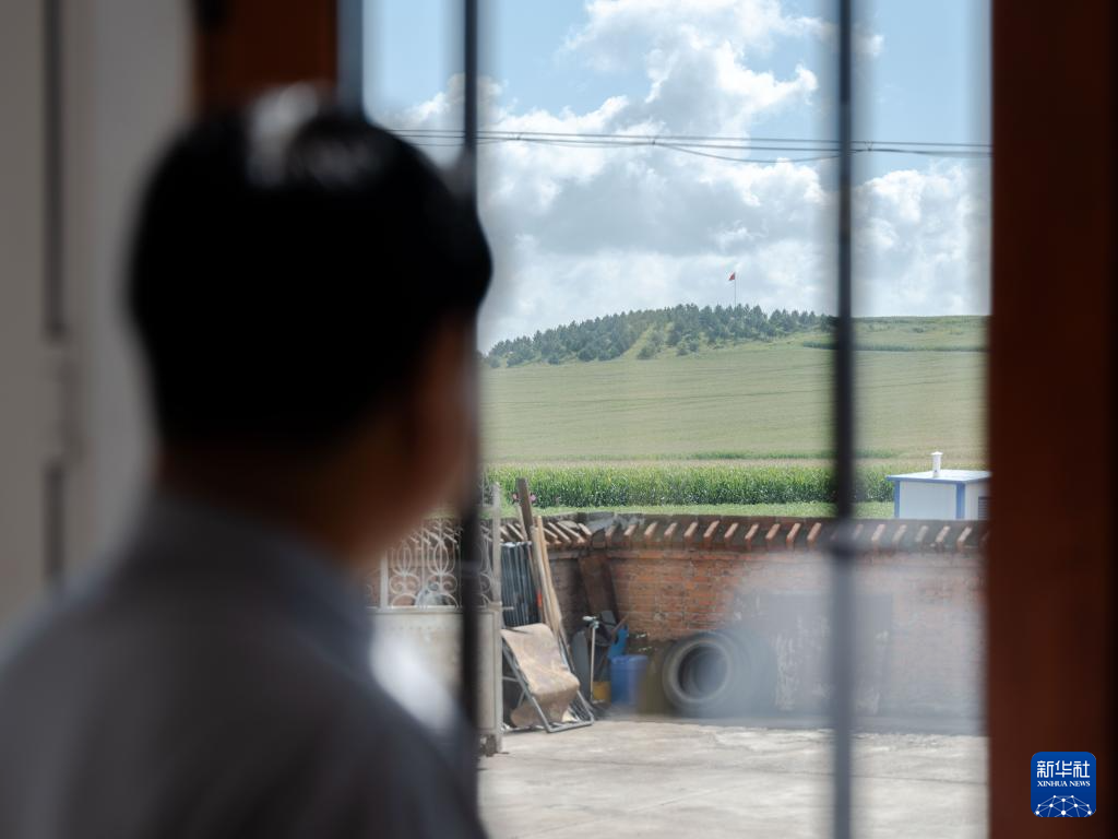 8月23日,內蒙古呼倫貝爾市阿榮旗六合鎮,孫福貴在家中透過窗戶遙望“紅軍崗”。