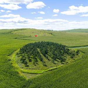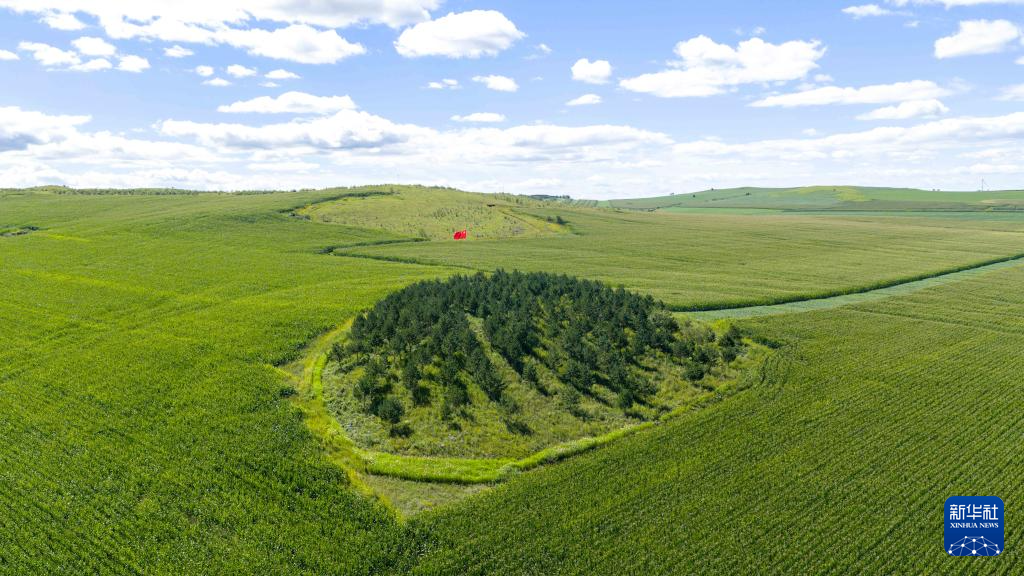 這是8月23日在內蒙古呼倫貝爾市阿榮旗六合鎮拍攝的田野中的“紅軍崗”(無人機照片)。