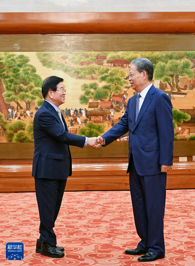8月26日下午,全國人大常委會委員長趙樂際在北京會見韓國總統特使樸炳錫。