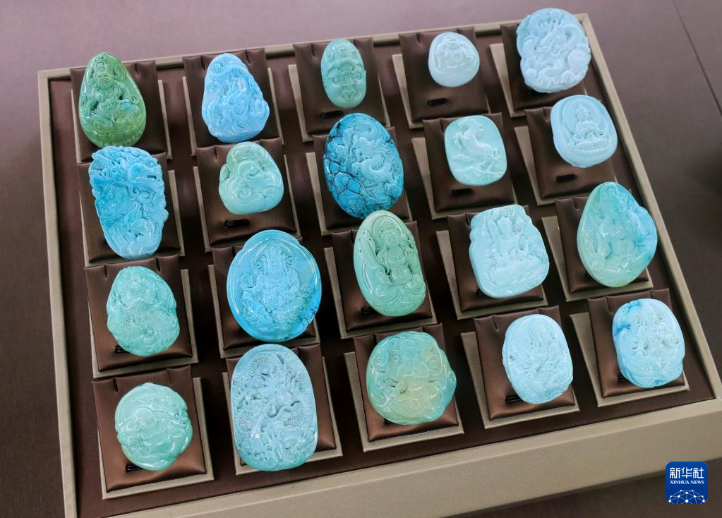 這是8月30日在湖北省竹山縣拍攝的綠松石工藝品。