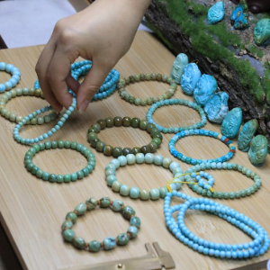 湖北省竹山縣是著名的綠松石富礦區,綠松石儲量約占全世界的一半。近年來,當地多種措施并舉打造“世界綠松石之都”,努力將資源優勢轉化為經濟優勢,取得明顯成效。截至2024年,全縣綠松石市場主體5600余家,全產業鏈年綜合產值近100億元,帶動7萬余人穩定就業,產品全球市場占有率超90%,綠松石產業已成為竹山的富民強縣支柱產業。