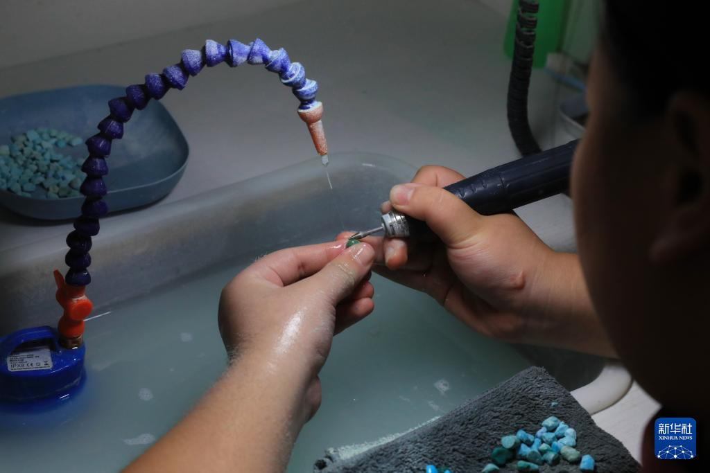 8月30日,技師在湖北省竹山縣加工綠松石。