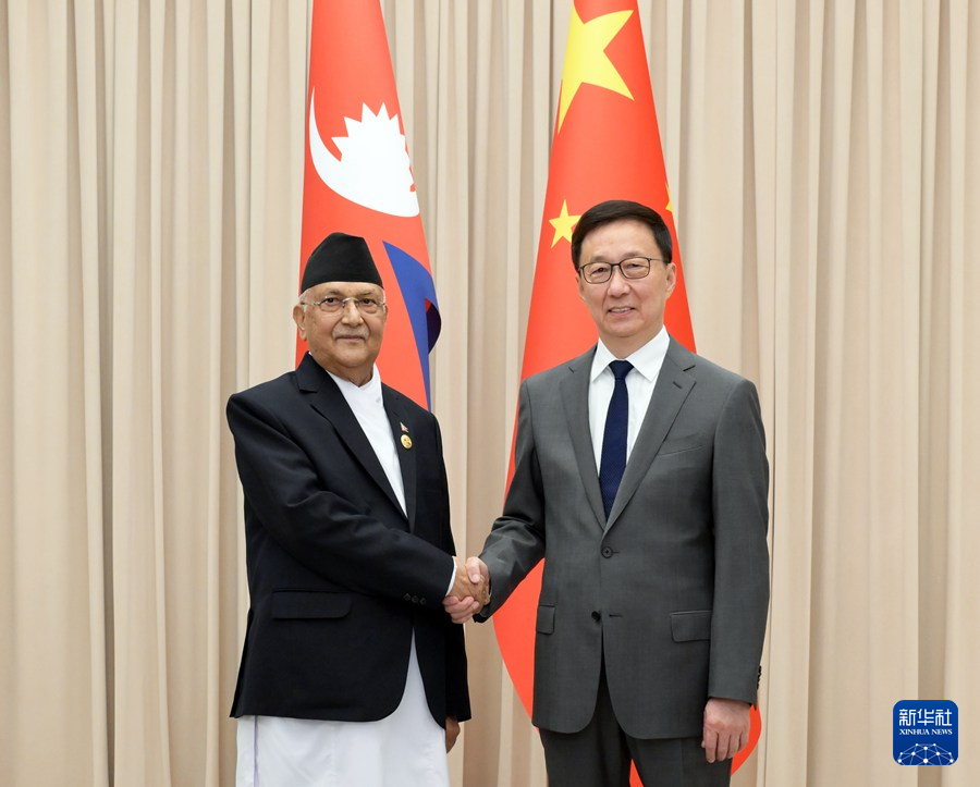 9月2日,國家副主席韓正在北京會見來華出席2025年上海合作組織峰會和紀念中國人民抗日戰爭暨世界反法西斯戰爭勝利80周年活動的尼泊爾總理奧利。