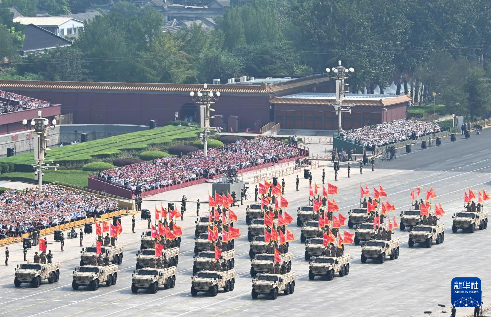 9月3日,紀念中國人民抗日戰爭暨世界反法西斯戰爭勝利80周年大會在北京隆重舉行。這是裝備方隊接受檢閱。