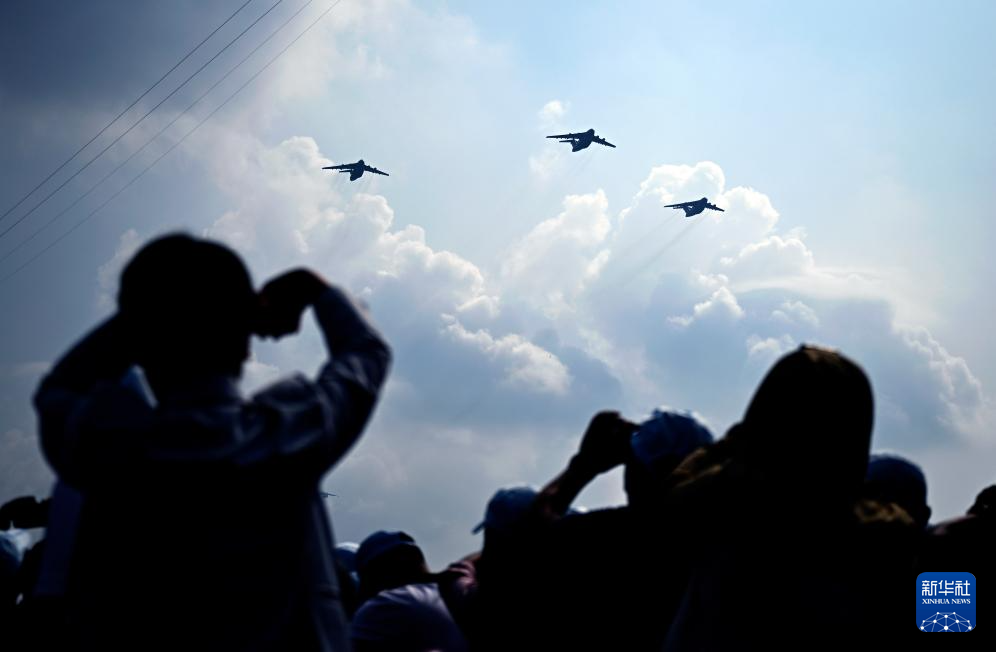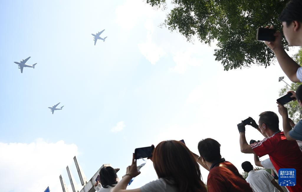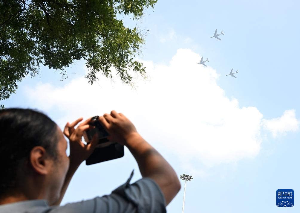 9月3日,紀念中國人民抗日戰爭暨世界反法西斯戰爭勝利80周年大會在北京隆重舉行。這是市民在拍攝運輸機梯隊。
