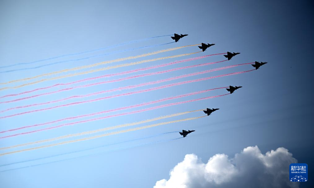 9月3日,紀念中國人民抗日戰爭暨世界反法西斯戰爭勝利80周年大會在北京隆重舉行。這是教練機梯隊接受檢閱。