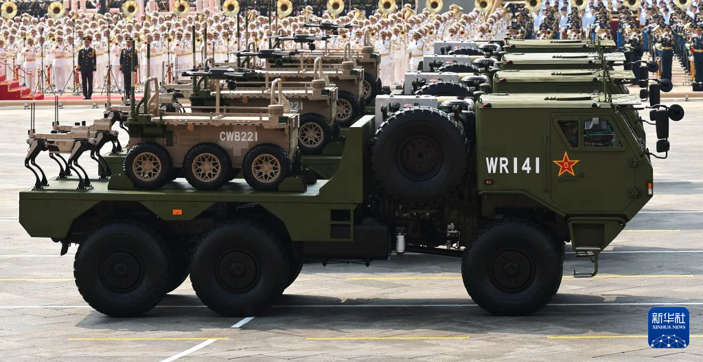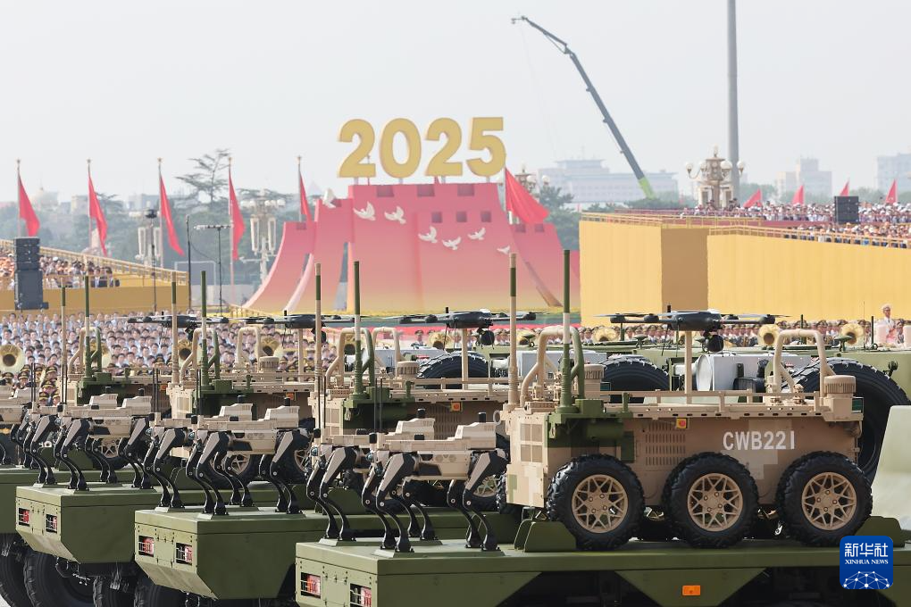 9月3日,紀念中國人民抗日戰爭暨世界反法西斯戰爭勝利80周年大會在北京隆重舉行。這是陸上無人作戰方隊接受檢閱。