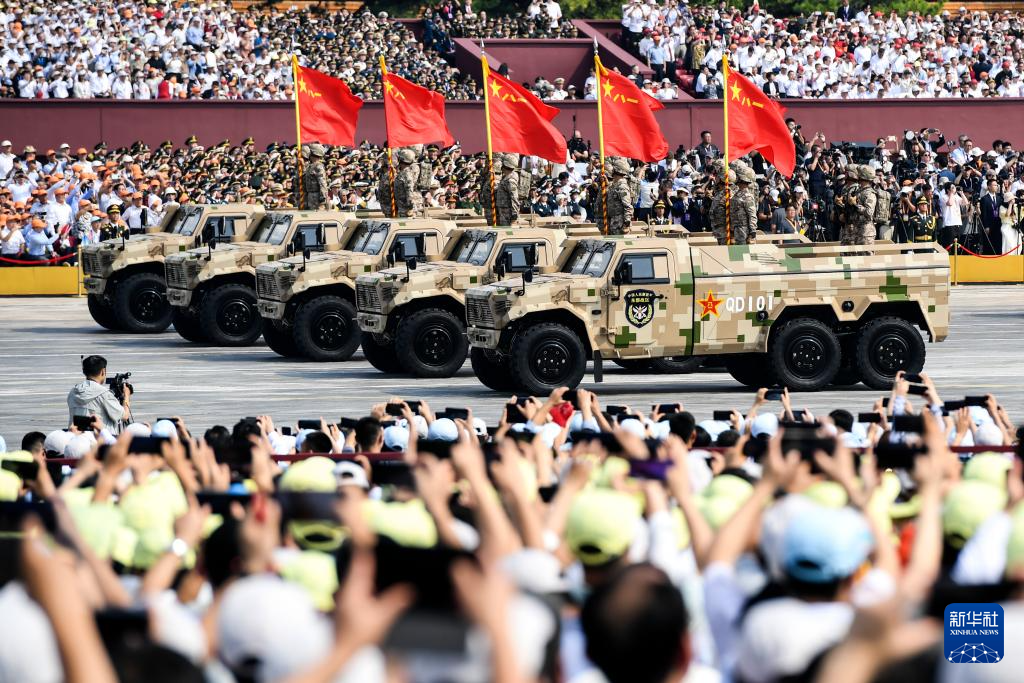 9月3日,紀念中國人民抗日戰爭暨世界反法西斯戰爭勝利80周年大會在北京隆重舉行。這是武警部隊方隊接受檢閱。