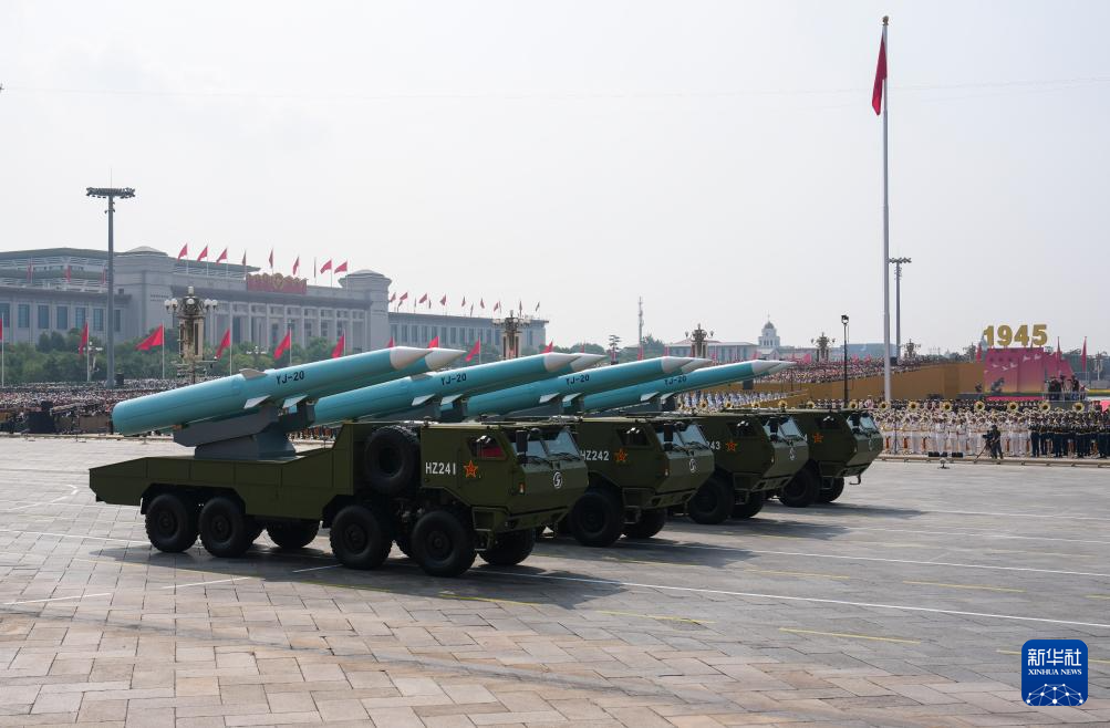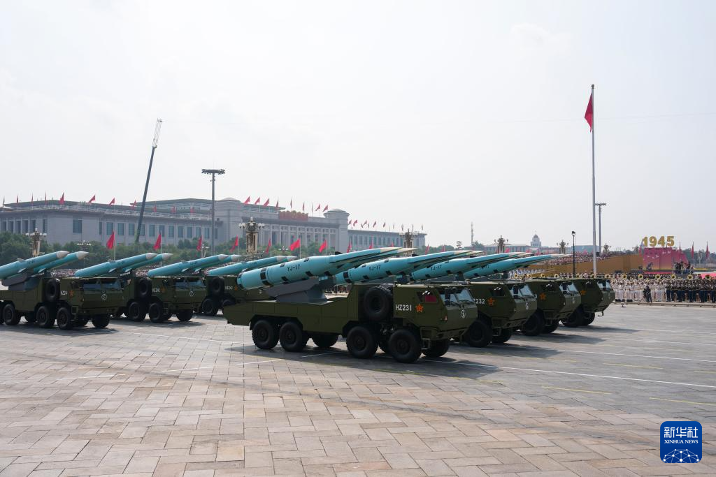 9月3日,紀念中國人民抗日戰爭暨世界反法西斯戰爭勝利80周年大會在北京隆重舉行。這是反艦導彈方隊接受檢閱。