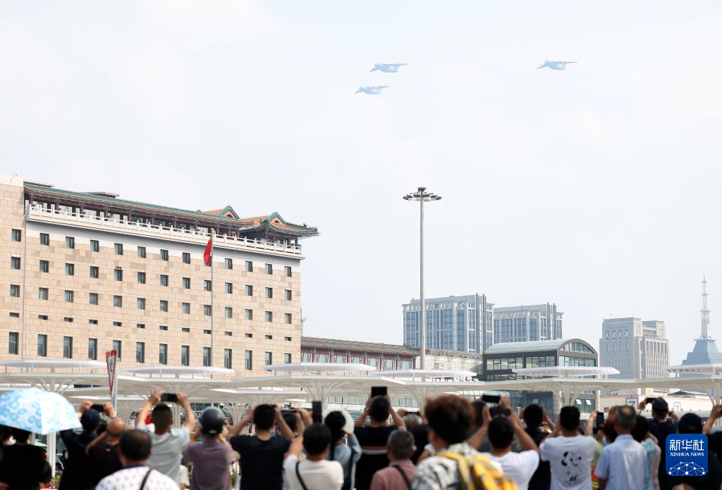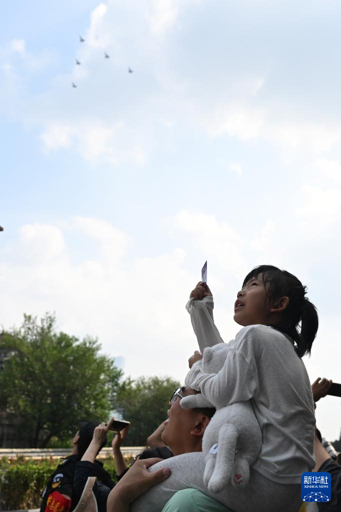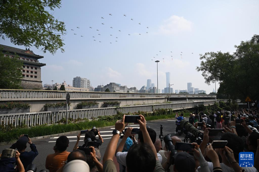 9月3日,紀念中國人民抗日戰爭暨世界反法西斯戰爭勝利80周年大會在北京隆重舉行。這是市民在觀看空中梯隊。