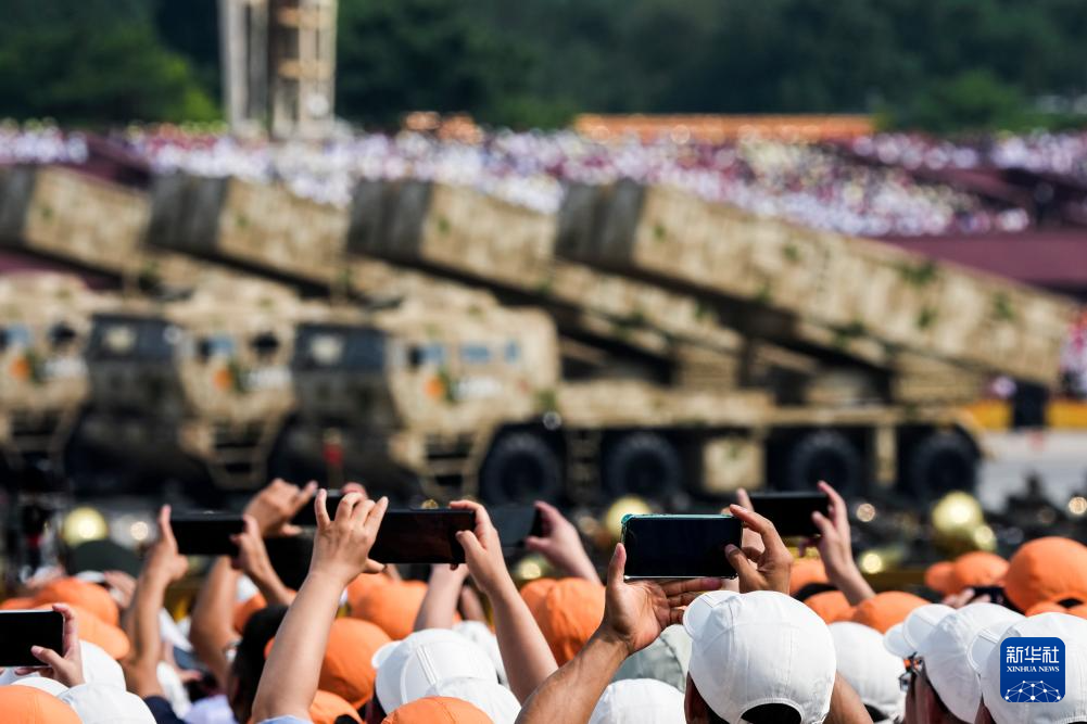 9月3日,紀念中國人民抗日戰爭暨世界反法西斯戰爭勝利80周年大會在北京隆重舉行。這是觀眾拍攝遠程火炮方隊接受檢閱。