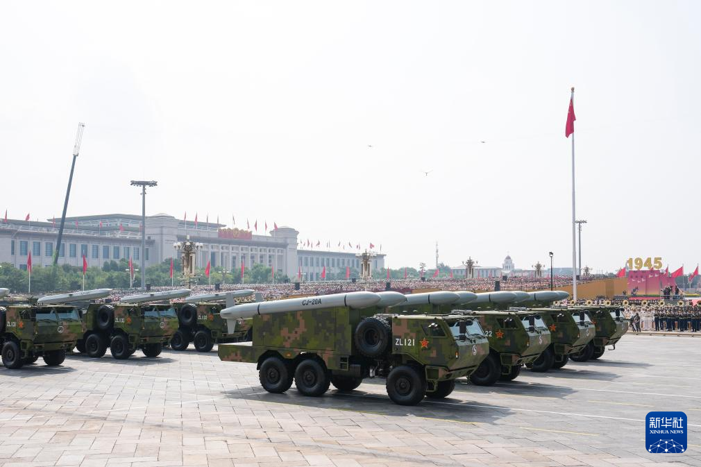 9月3日,紀念中國人民抗日戰爭暨世界反法西斯戰爭勝利80周年大會在北京隆重舉行。這是反艦導彈方隊通過天安門廣場。