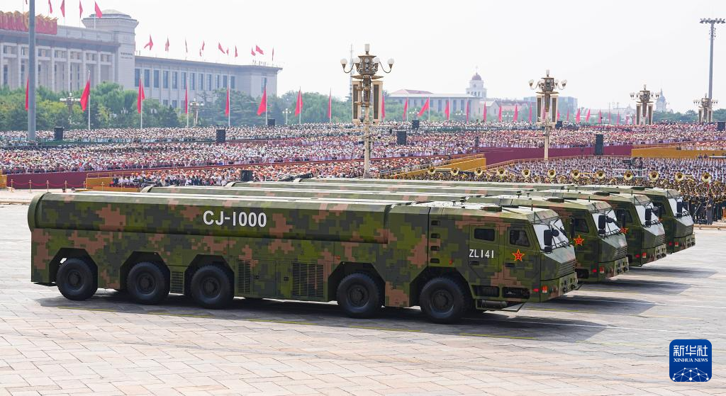 9月3日,紀念中國人民抗日戰爭暨世界反法西斯戰爭勝利80周年大會在北京隆重舉行。這是核導彈第一方隊通過天安門廣場。