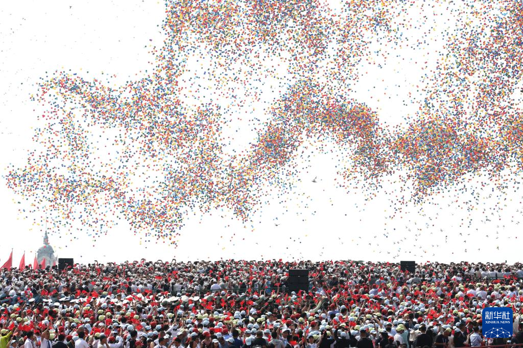 9月3日,紀念中國人民抗日戰爭暨世界反法西斯戰爭勝利80周年大會在北京隆重舉行。這是紀念大會現場放飛氣球。