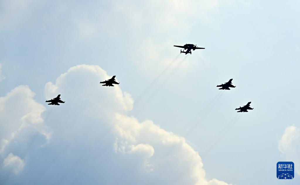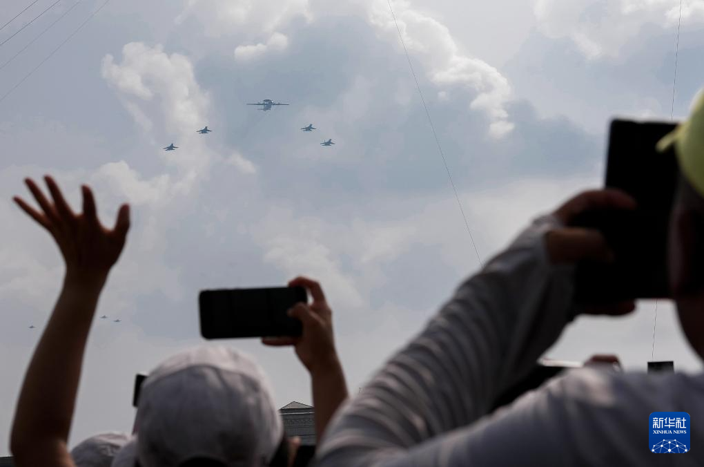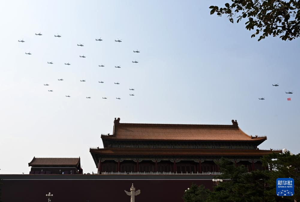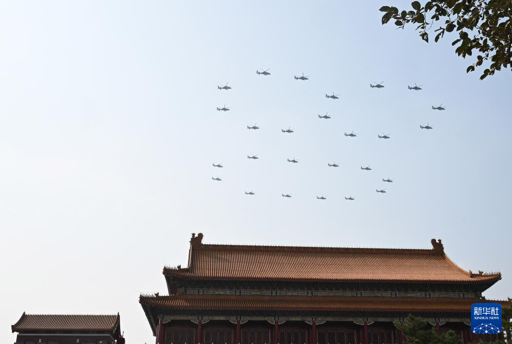 9月3日,紀念中國人民抗日戰爭暨世界反法西斯戰爭勝利80周年大會在北京隆重舉行。這是空中護旗梯隊接受檢閱。