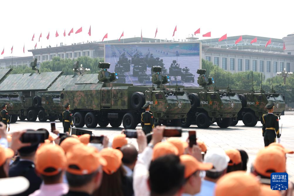9月3日,紀念中國人民抗日戰爭暨世界反法西斯戰爭勝利80周年大會在北京隆重舉行。這是艦載防空武器方隊通過天安門廣場。