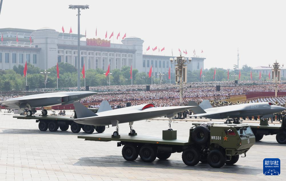 9月3日,紀念中國人民抗日戰爭暨世界反法西斯戰爭勝利80周年大會在北京隆重舉行。這是空中無人作戰方隊接受檢閱。