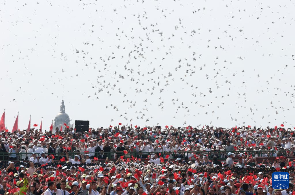 9月3日,紀念中國人民抗日戰爭暨世界反法西斯戰爭勝利80周年大會在北京隆重舉行。這是紀念大會現場放飛和平鴿。