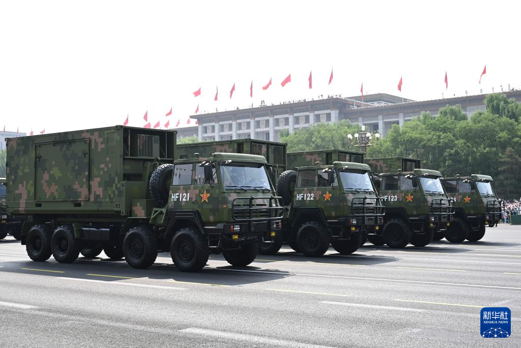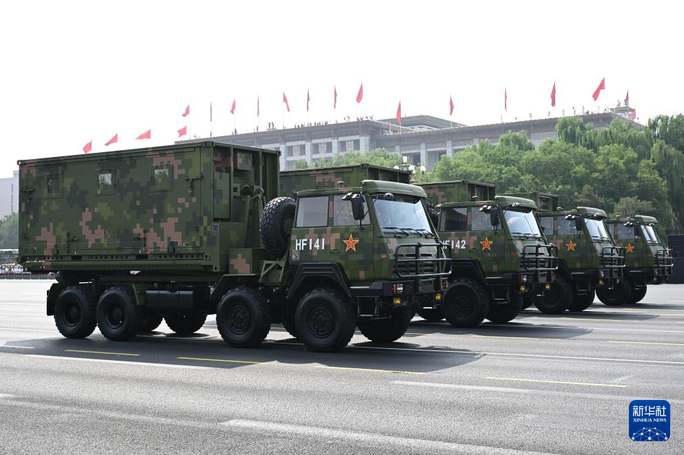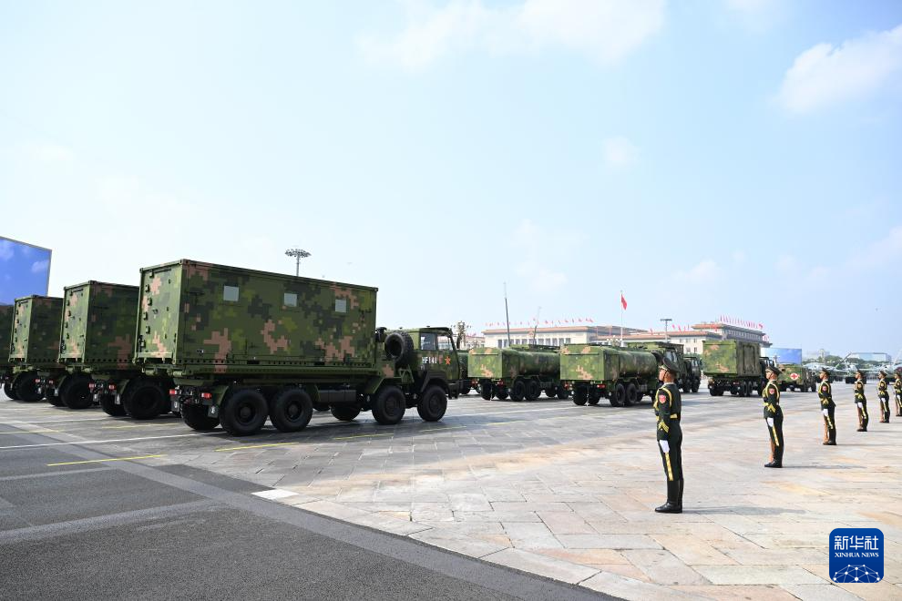 9月3日,紀念中國人民抗日戰爭暨世界反法西斯戰爭勝利80周年大會在北京隆重舉行。這是網絡空間部隊方隊接受檢閱。
