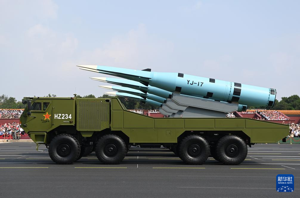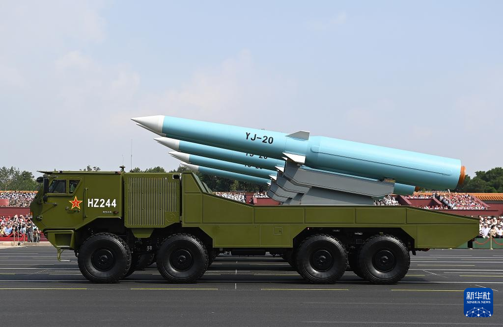 9月3日,紀念中國人民抗日戰爭暨世界反法西斯戰爭勝利80周年大會在北京隆重舉行。這是反艦導彈方隊接受檢閱。