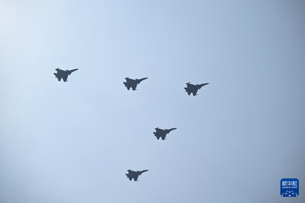 9月3日,紀念中國人民抗日戰爭暨世界反法西斯戰爭勝利80周年大會在北京隆重舉行。這是艦載機梯隊接受檢閱。