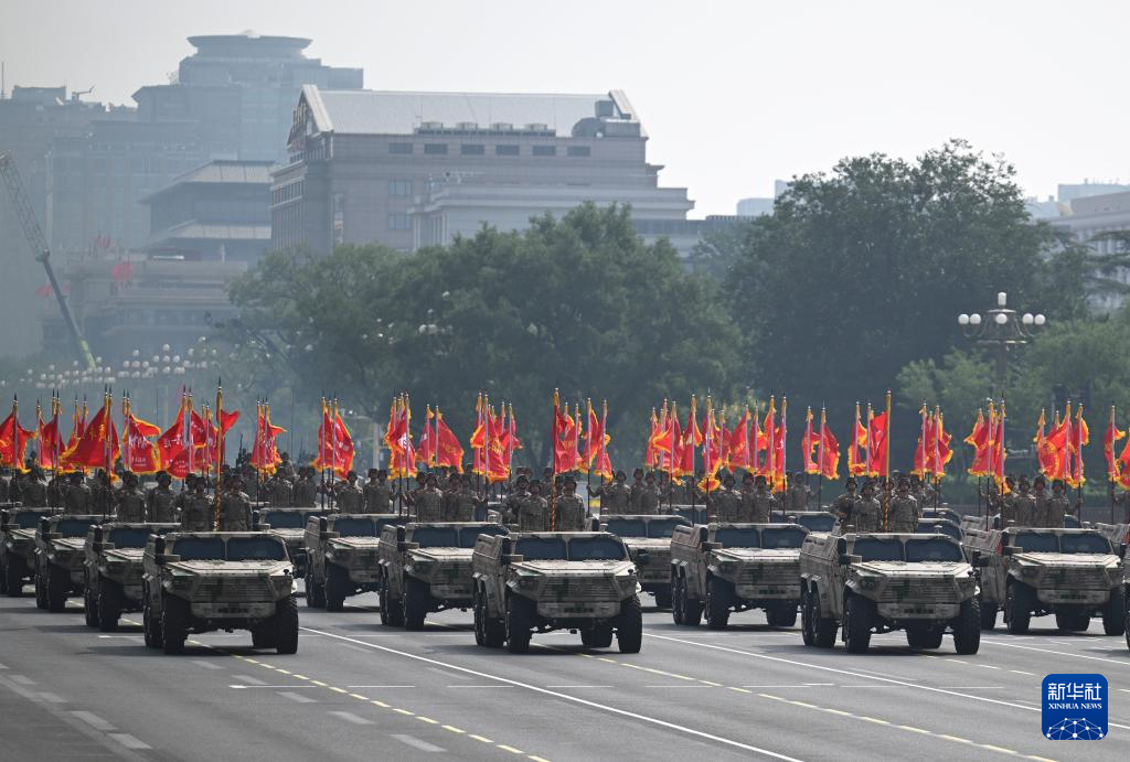9月3日,紀念中國人民抗日戰爭暨世界反法西斯戰爭勝利80周年大會在北京隆重舉行。這是戰旗方隊接受檢閱。