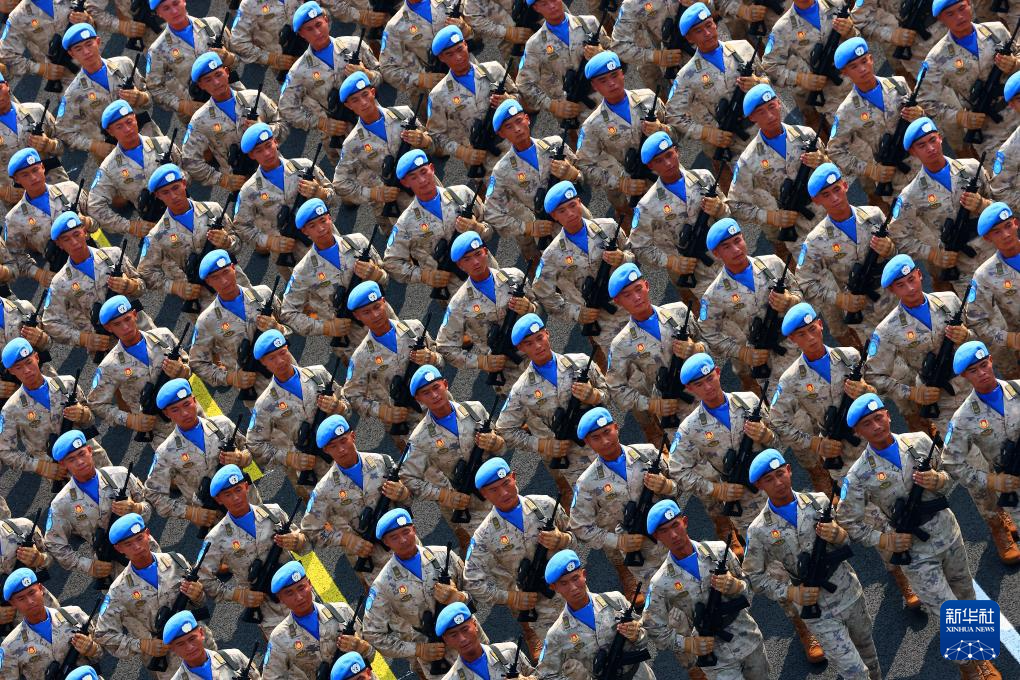 9月3日,紀念中國人民抗日戰爭暨世界反法西斯戰爭勝利80周年大會在北京隆重舉行。這是維和部隊方隊接受檢閱。
