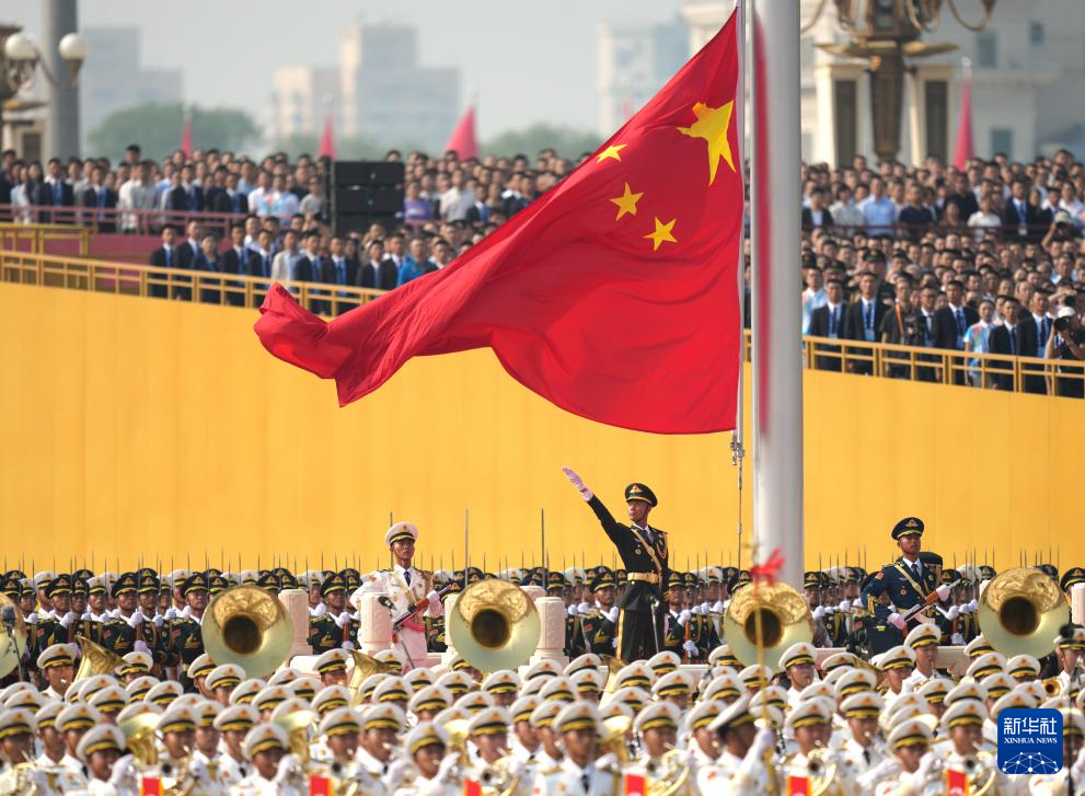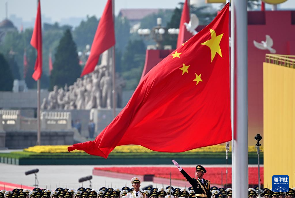 9月3日,紀念中國人民抗日戰爭暨世界反法西斯戰爭勝利80周年大會在北京隆重舉行。這是天安門廣場舉行隆重的升國旗儀式。