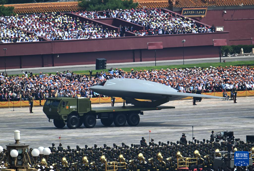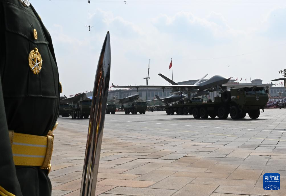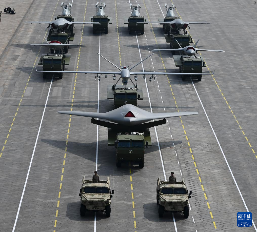 9月3日,紀念中國人民抗日戰爭暨世界反法西斯戰爭勝利80周年大會在北京隆重舉行。這是空中無人作戰方隊接受檢閱。