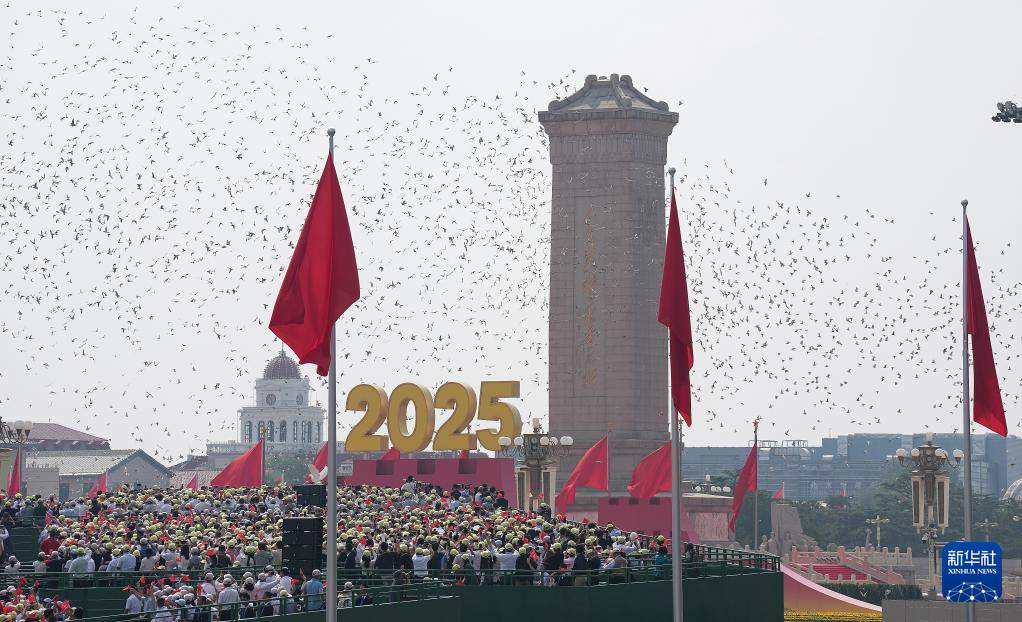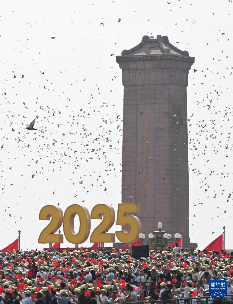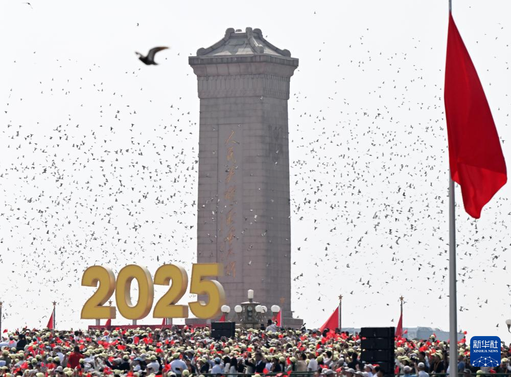 9月3日,紀念中國人民抗日戰爭暨世界反法西斯戰爭勝利80周年大會在北京隆重舉行。這是紀念大會現場放飛和平鴿。