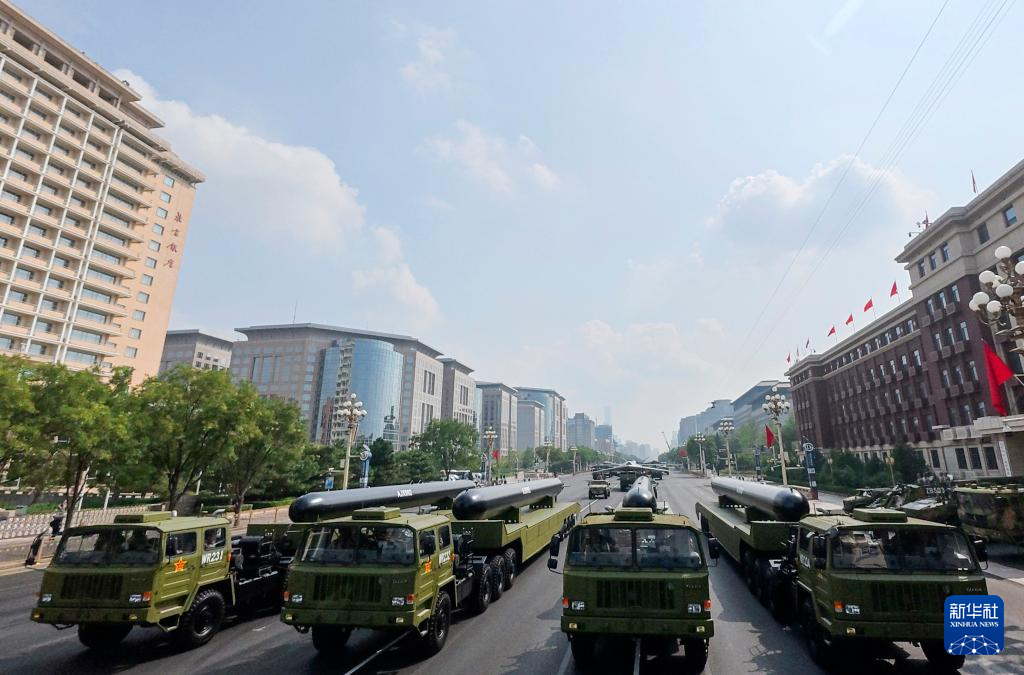 9月3日,紀念中國人民抗日戰爭暨世界反法西斯戰爭勝利80周年大會在北京隆重舉行。這是高超聲速導彈方隊接受檢閱。