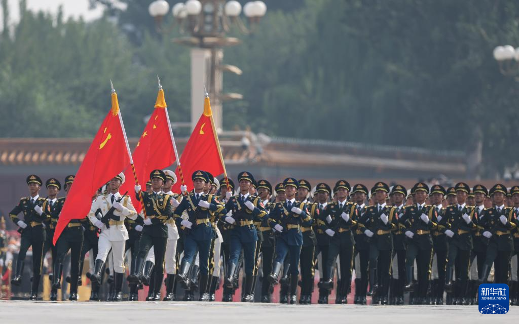 9月3日,紀念中國人民抗日戰爭暨世界反法西斯戰爭勝利80周年大會在北京隆重舉行。這是國旗護衛隊在行進中。