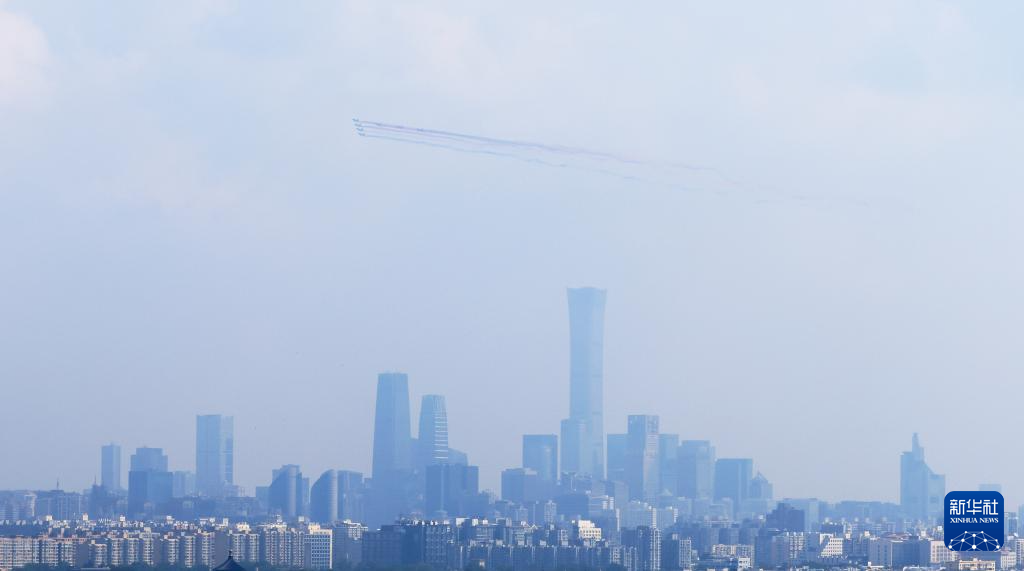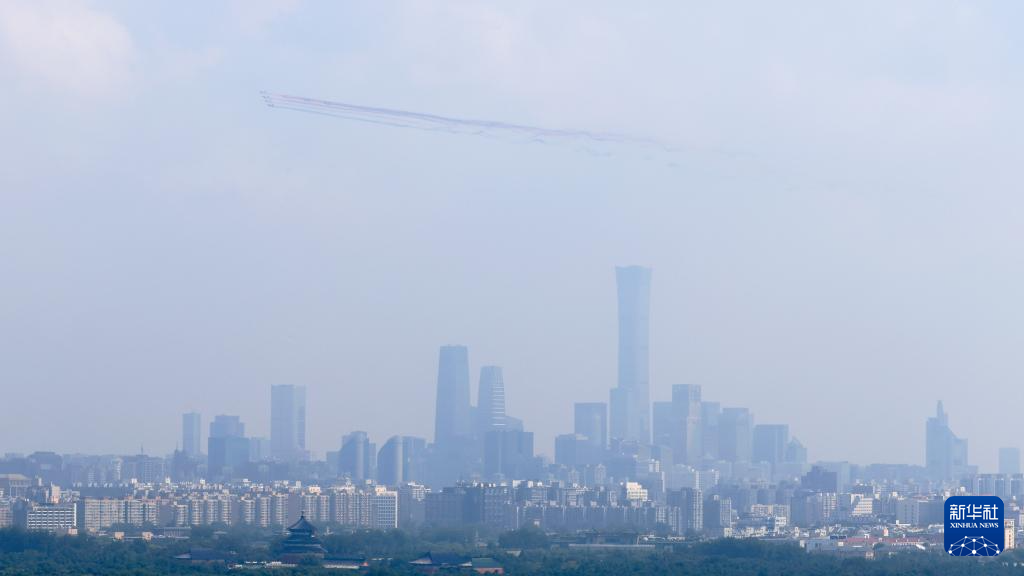 9月3日,紀念中國人民抗日戰爭暨世界反法西斯戰爭勝利80周年大會在北京隆重舉行。這是教練機梯隊飛過天安門廣場上空。