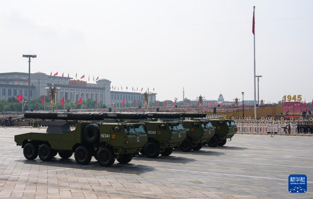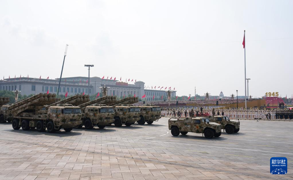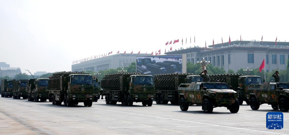 9月3日,紀念中國人民抗日戰爭暨世界反法西斯戰爭勝利80周年大會在北京隆重舉行。這是遠程火炮方隊接受檢閱。