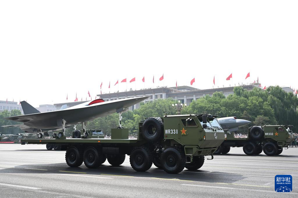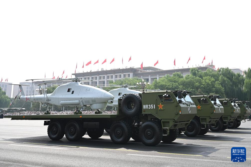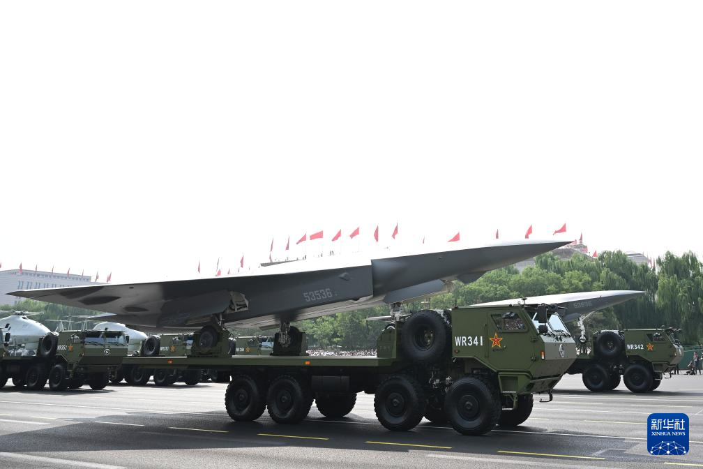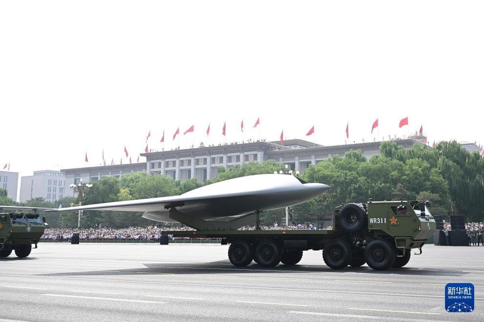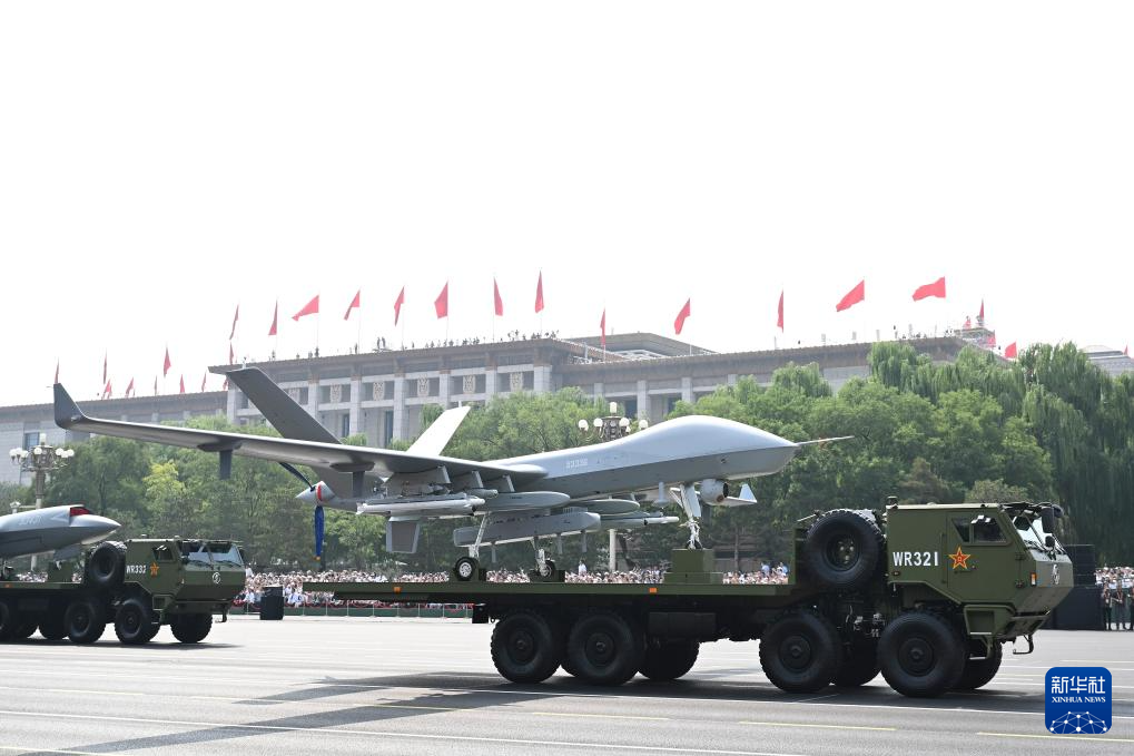 9月3日,紀念中國人民抗日戰爭暨世界反法西斯戰爭勝利80周年大會在北京隆重舉行。這是空中無人作戰方隊接受檢閱。