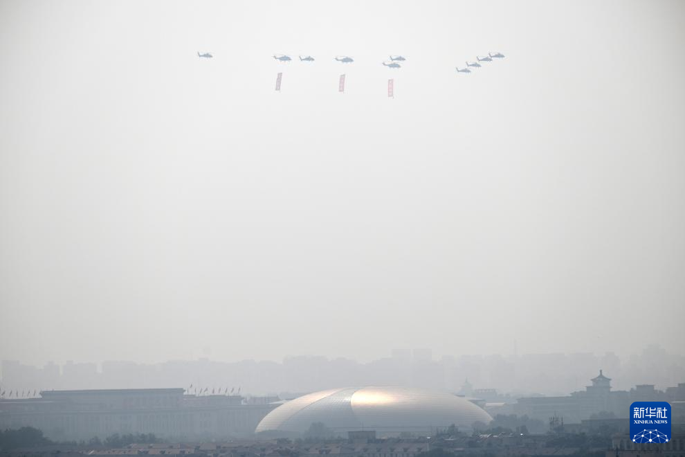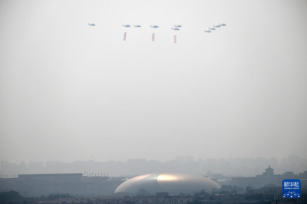 9月3日,紀念中國人民抗日戰爭暨世界反法西斯戰爭勝利80周年大會在北京隆重舉行。這是空中梯隊接受檢閱。