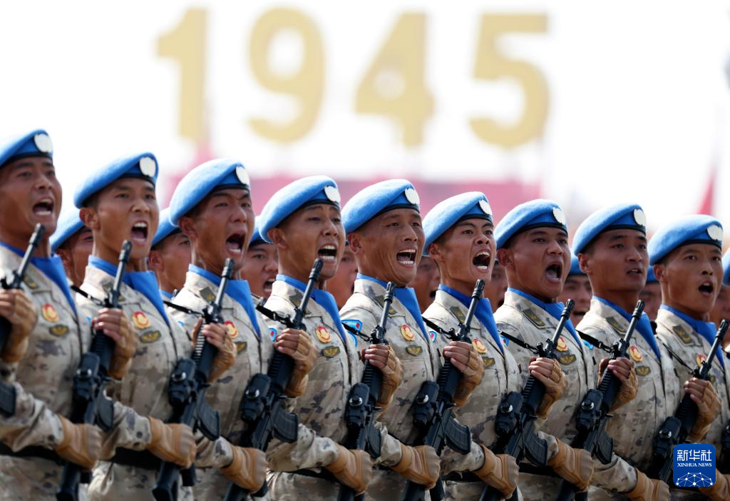 9月3日,紀念中國人民抗日戰爭暨世界反法西斯戰爭勝利80周年大會在北京隆重舉行。這是維和部隊方隊接受檢閱。